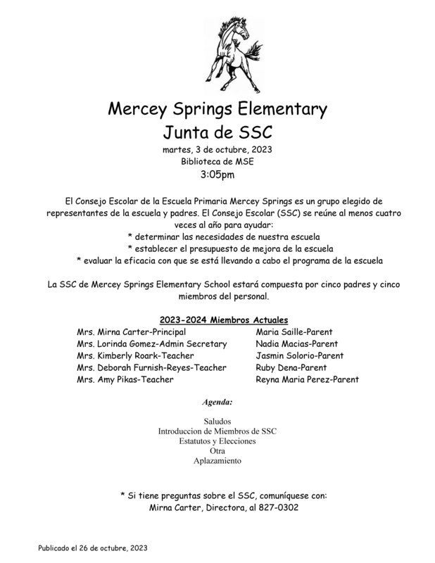 SChool Site Council Meeting 10/03/2023 @ 3:05pm